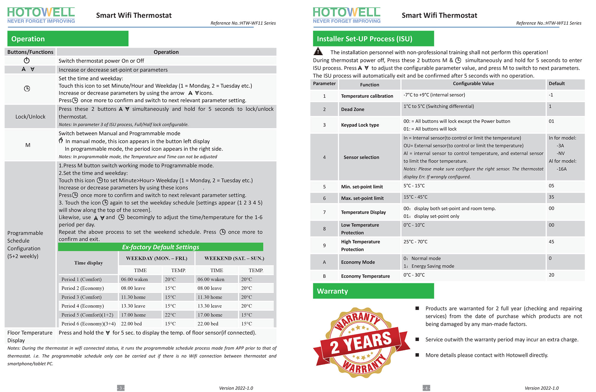 Your new Hotowell smart thermostat WF11 has been designed to give you many years of reliable service and easy-to-use, Capacitive-touch-button climate control.
