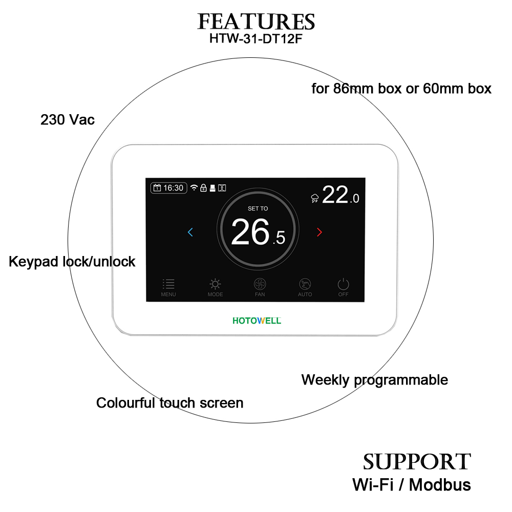 In conclusion, HTW-31-DT12F is a feature-packed fan coil thermostat that offers users a range of benefits. Its attractive function make it an excellent choice for customers. Feel free to contact with Hotowell directly for more details!