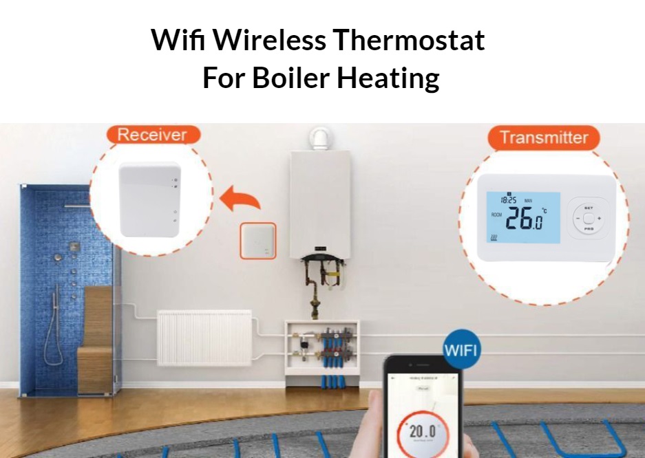 Los termostatos ordinarios de la caldera suspendida generalmente están cableados, y el termostato tiene una salida de contacto pasiva, que se puede conectar directamente a la caldera suspendida. Generalmente se instala no lejos de la caldera.