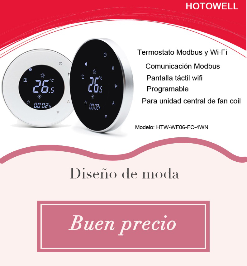 El termostato HTW-WF06-FC-4WN, como nuevo producto de HOTOWLL 2020, está especialmente diseñado para satisfacer las necesidades de integración wifi y MODBUS en el termostato, que no solo puede satisfacer el control remoto personalizado del usuario final, sino también el sistema gestión de proveedores del sistema completo de fan coil. Este termostato podría usarse ampliamente para el control centralizado del aire acondicionado en edificios de apartamentos.