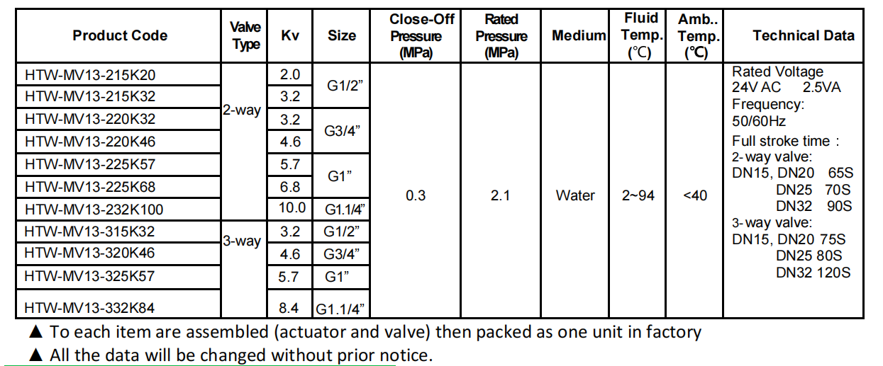 HTW-MV13 series Motorized Modulating Control Valve are mainly used in central air- conditioning cool/heat