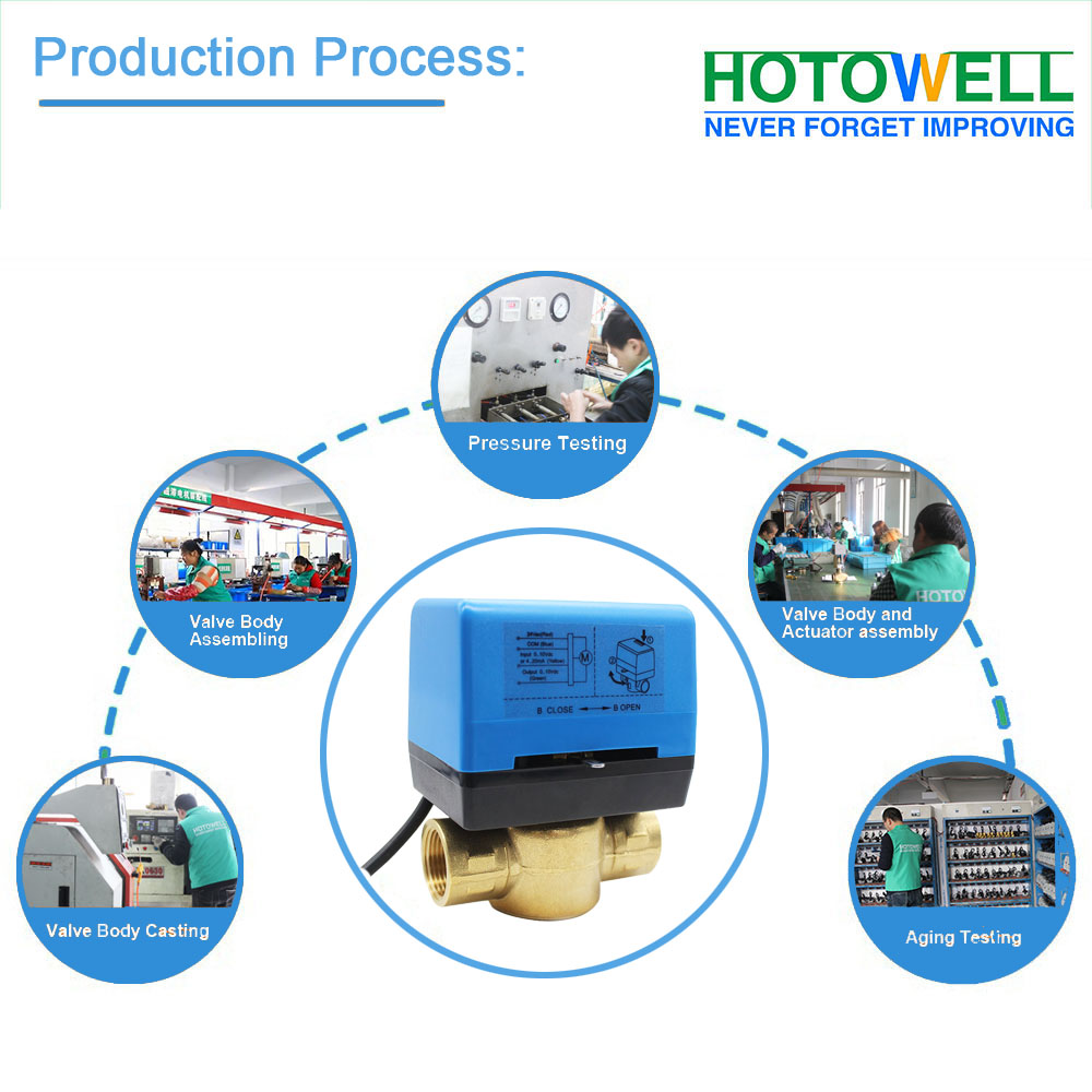 HTW-MV13 series floating/modulating control valve is driven by bi-directional motor. The floating /modulating thermostat will continuously collect the data and make processing, and send out control signals to operate or stop the motor so as to control the open/close angle of the valve.