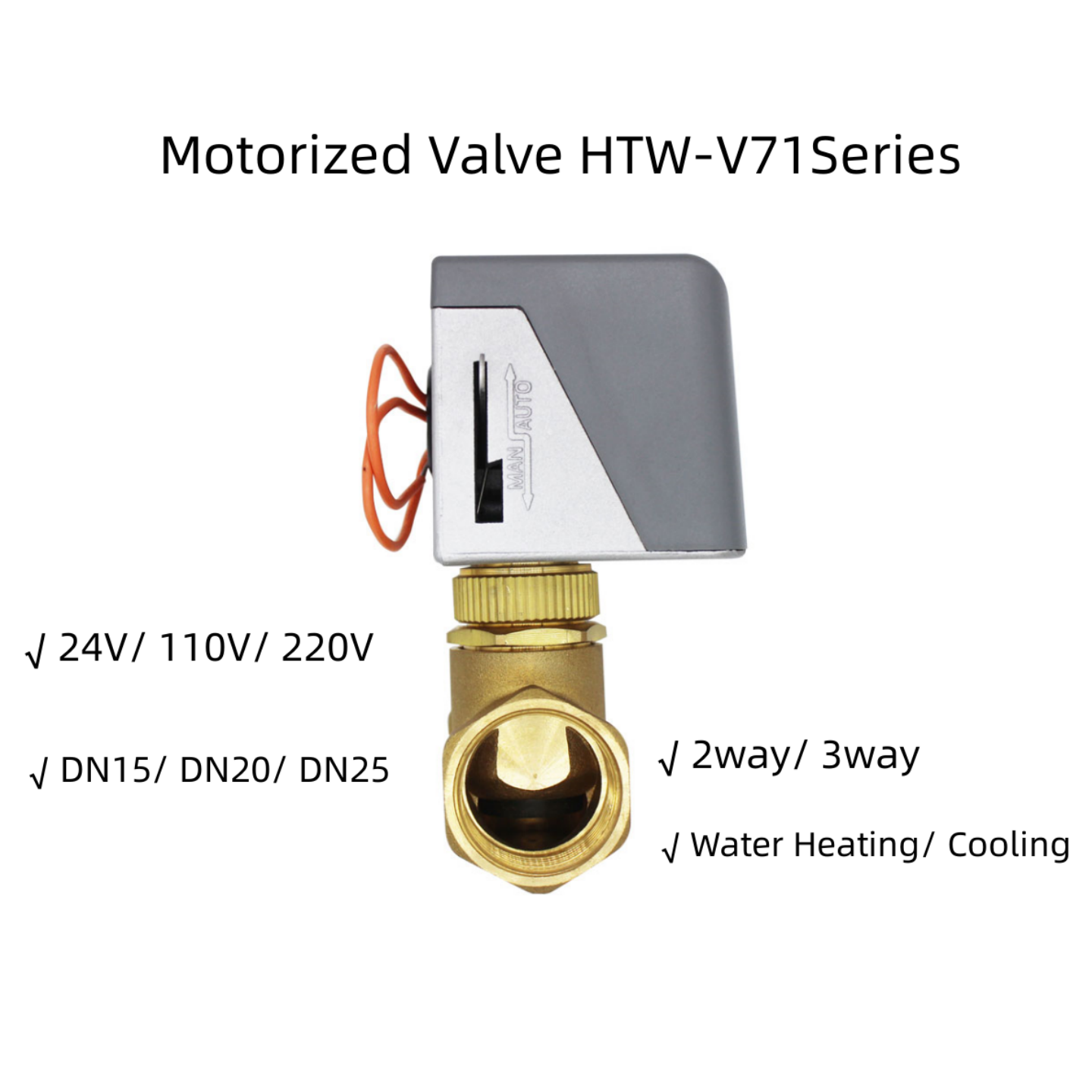HTW-V71 Series Motorized Valves are used to control the flow of hot water, chill water through the fan coil unit in heating,
