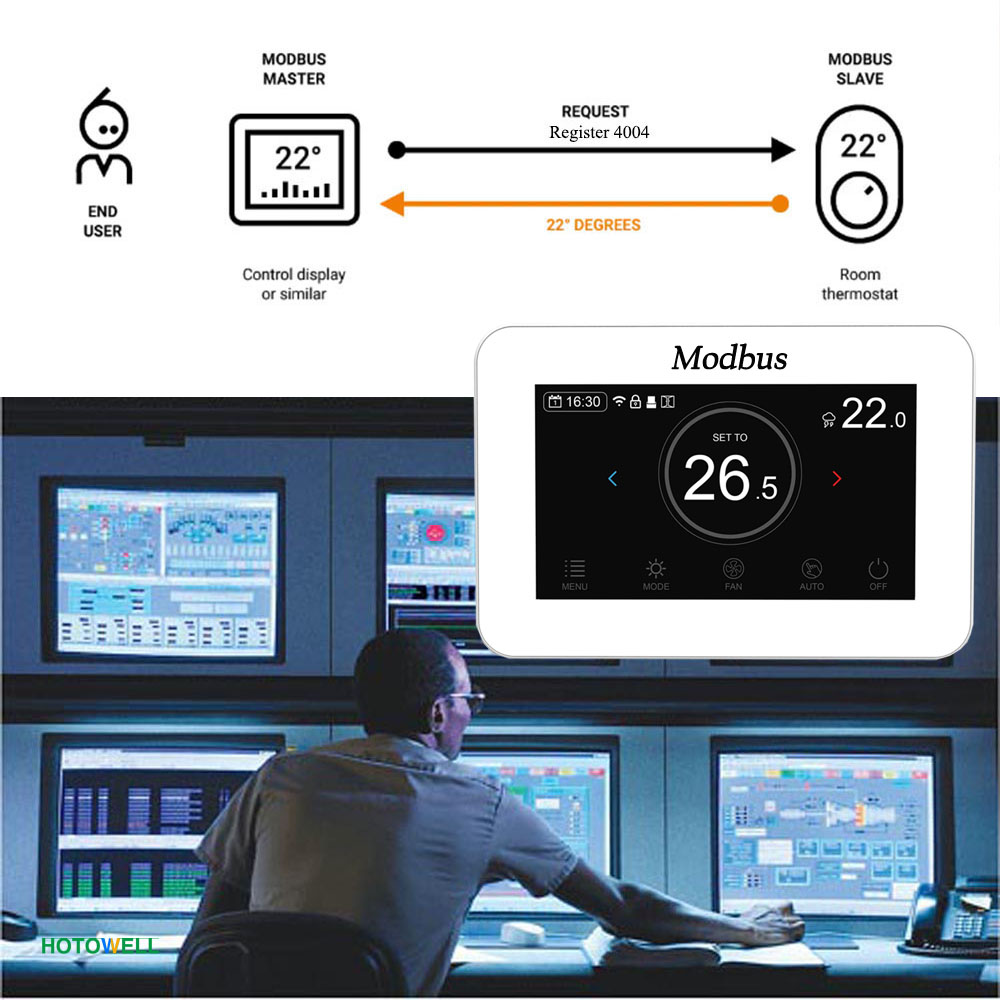 This smart FCU thermostat is designed to control the fans, valves, dampers or electric heater in a fan coil units and heating applications in industrial, commercial or residential environments.