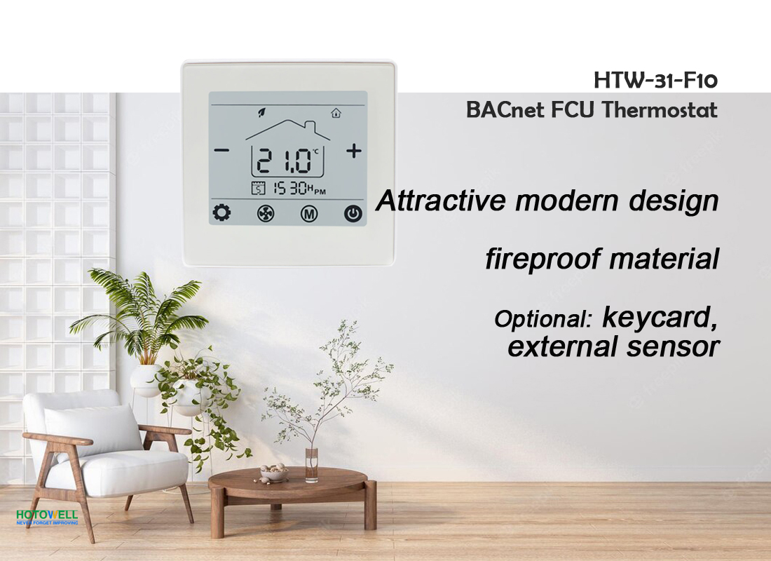 This HTW-31-F10 digital thermostat is designed to controls the fans, valves, dampers or electric heater in fan coil units and heating applications in industrial, commercial or residential environment.