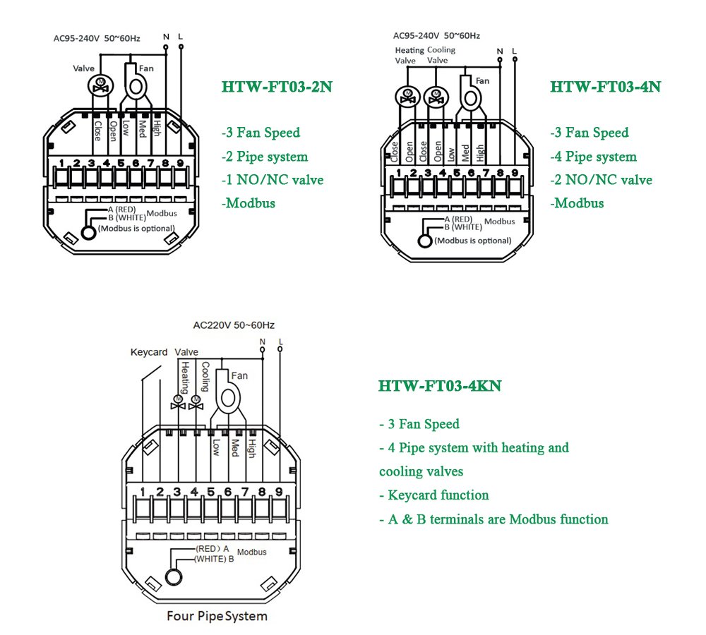 Modbus Thermostat Temperature Controller Smart Thermostat Fan Coil Thermostat with Optional Keycard Function
