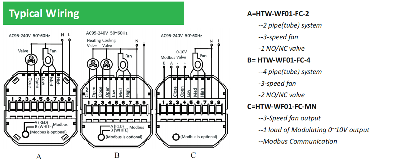 HTW-WF01-FC series Smart Wifi fan coil thermostat. It is widely used in these environment like Homes, Residential building, Schools, Hotels, Hospital, Offices and etc. to main an ideal room temperature purpose.