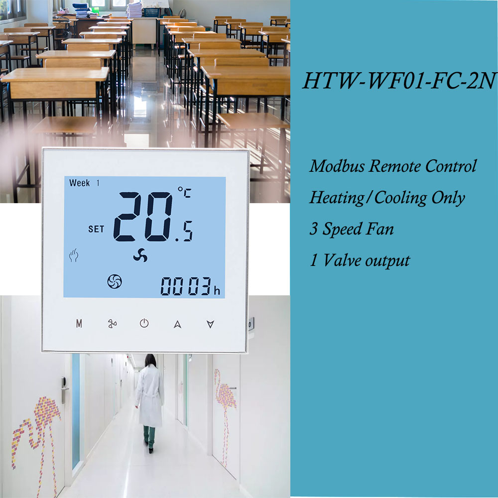 HTW-WF01-FC series Smart Wifi fan coil thermostat. It is widely used in these environment like Homes, Residential building, Schools, Hotels, Hospital, Offices and etc. to main an ideal room temperature purpose.