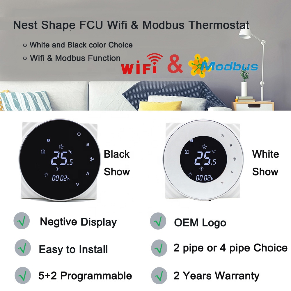 Hotowell Fan Coil Thermostat 240 Vac Wifi Programmable Thermostat with Nest Shape