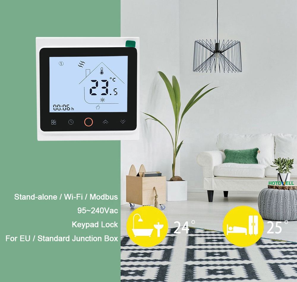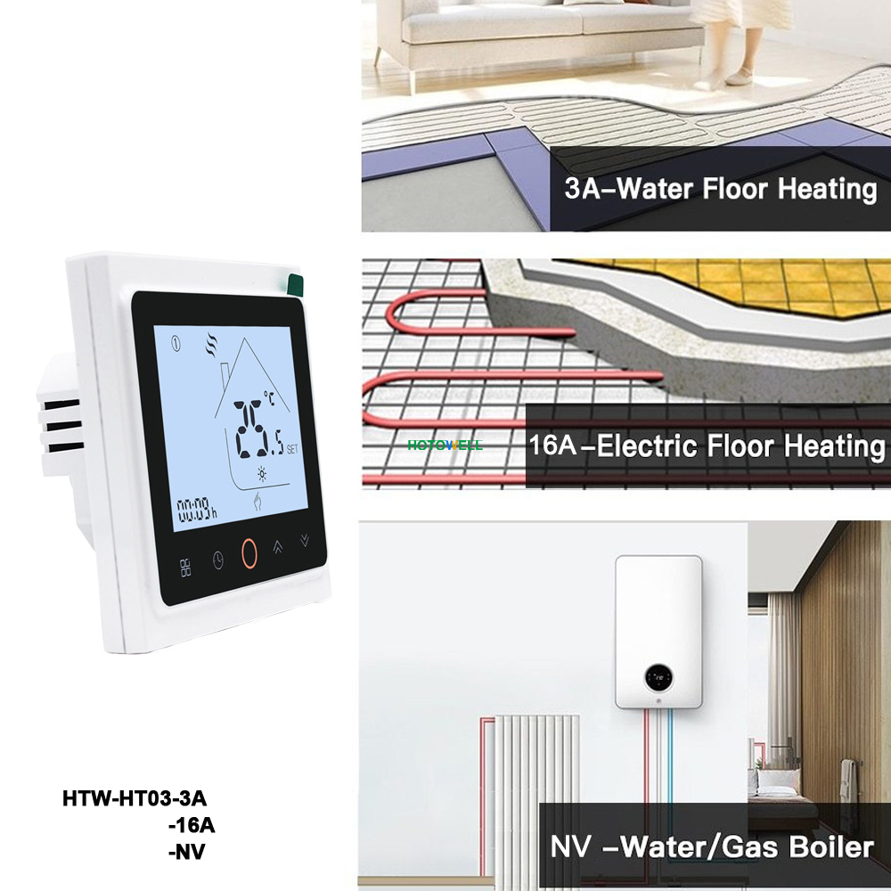 HTW-HT03 series heating thermostat is widely used in these environments like Homes, Residential buildings, Schools, Hotels, Hospitals, Offices and etc. to maintain an ideal room temperature purpose. It can be used in Electric Underfloor Heating, Water Heating or Water/Gas Boiler systems.