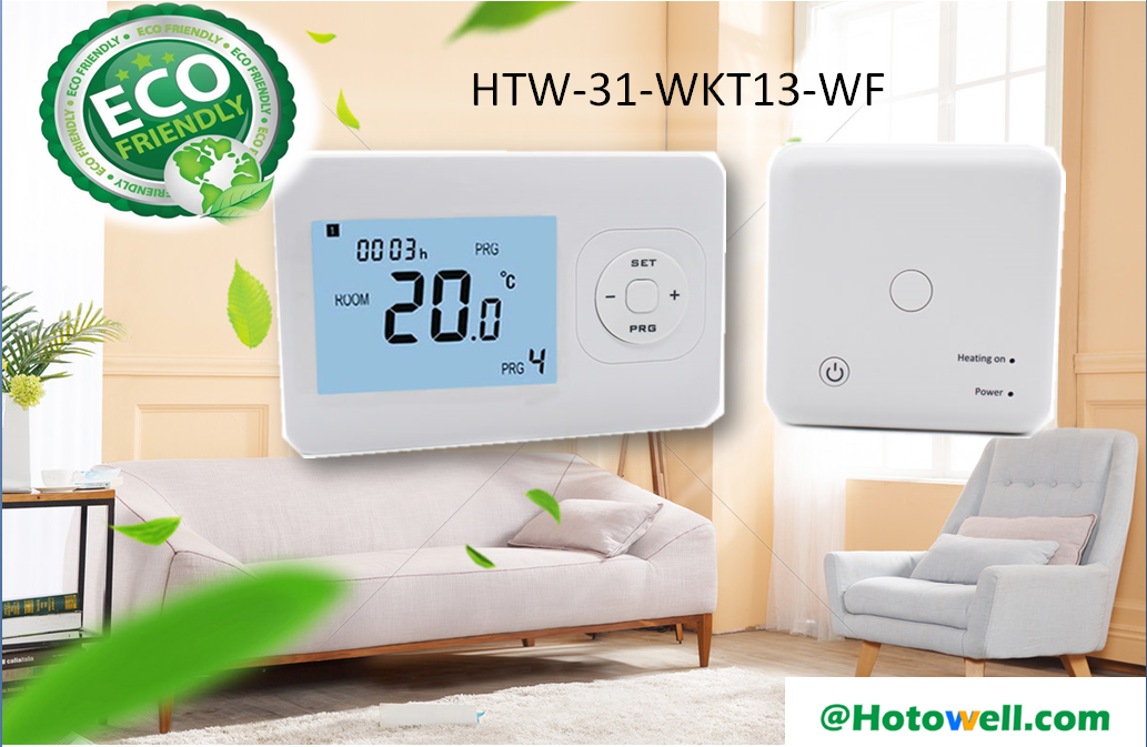 √ Large display can be clearly read with the background lighting. √ Easy to fit thermostat and receiver. √ Five buttons make it easy to use. √ 4 periods of each day programmable √ The display shows the set temperature as well as the measured temperature, time. √ Temperature display in degrees Celsius. √ The thermostat is supplied wit h a wall fixing frame, base and a very compact receiver (surface mounted).