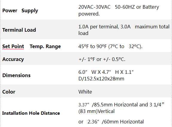 • Apply to 24VAC or 2 *AA alkaline batteries power supply.