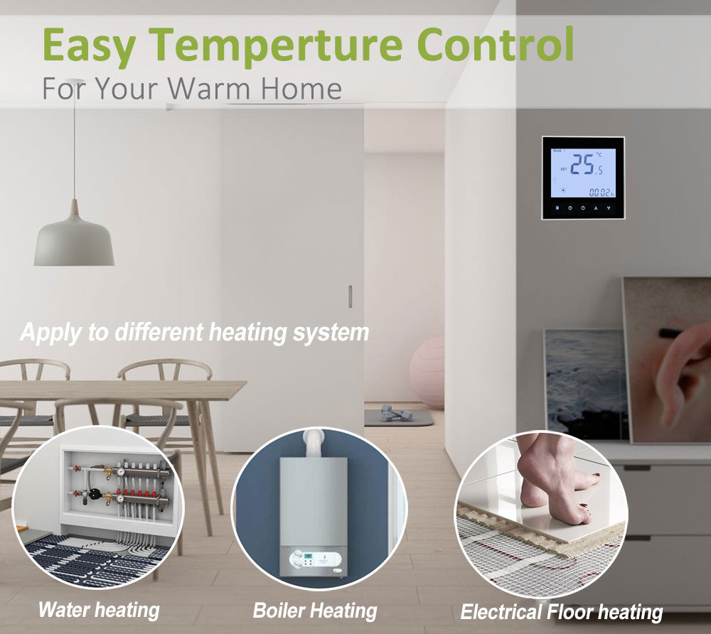 HTW-WF01 series smart wifi fan coil thermostat is widely used in these environment like Homes, Residential buildings, Schools, Hotels, Hospitals, Offices and etc. to main an ideal room temperature purpose.