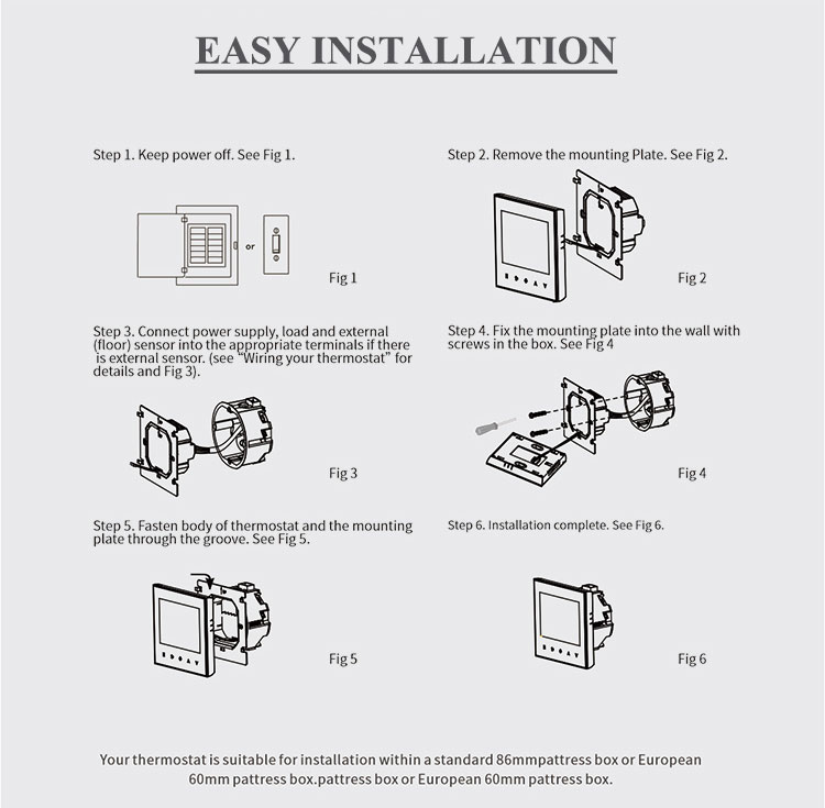 HTW-WF03 series LED Matrix lighting smart Wifi thermostat is widely used in these environment like Homes, Residential buildings, Schools, Hotels, Hospitals, Offices and etc. to main an ideal room temperature purpose. It can be used in Electric Underfloor Heating, Water Heating or Water/Gas Boiler systems.