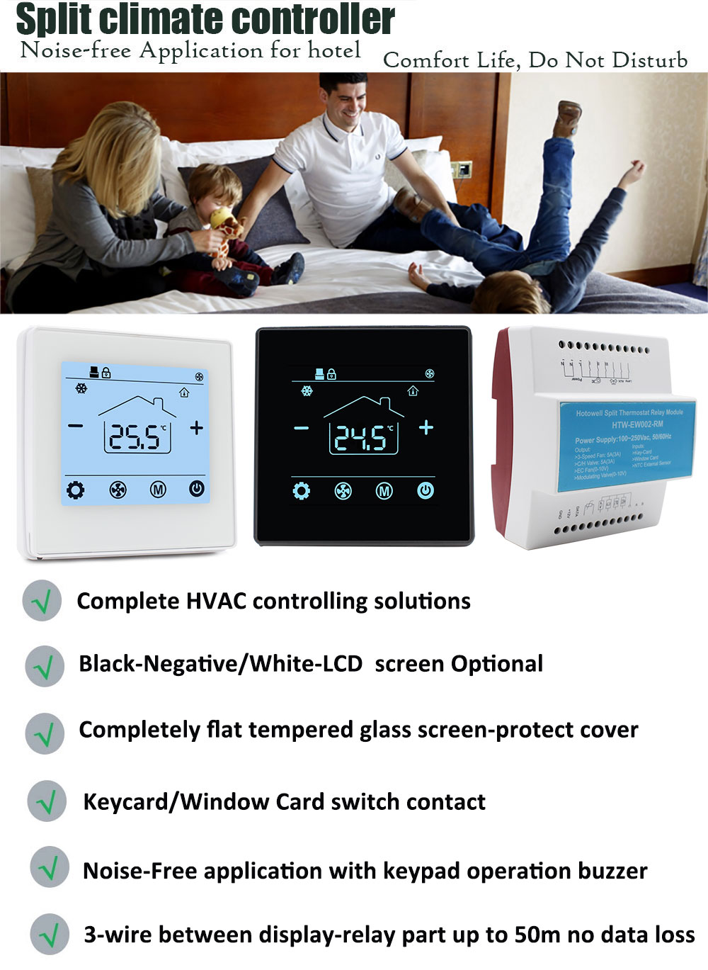 Up to 50 Meters No Data Loss Hotel Modbus Fan Coil AC Smart Split Noise-Free Thermostat