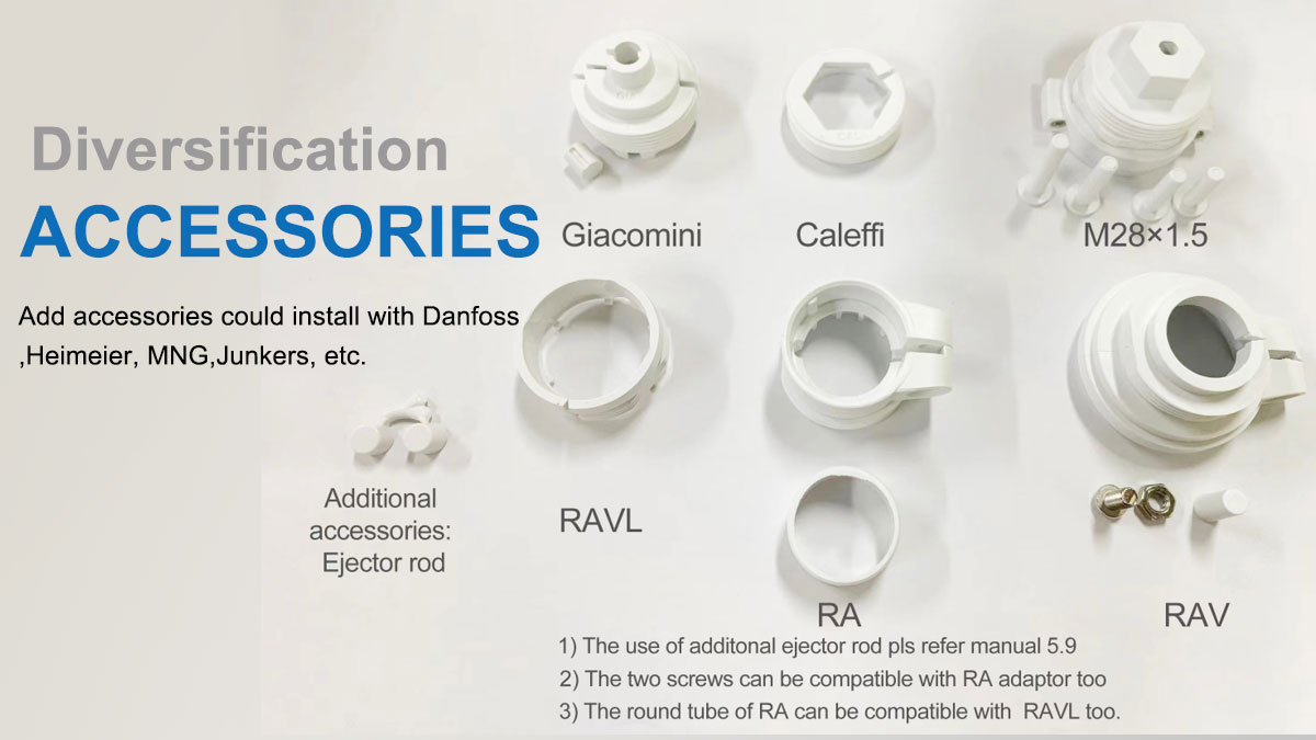 The device moves a valve to intelligently control the dlow of heat to the radiator. with the thermostat radiator valve RT16 you can convinently adjust the room temperature between 5-30℃, and save more than 15% of energy.