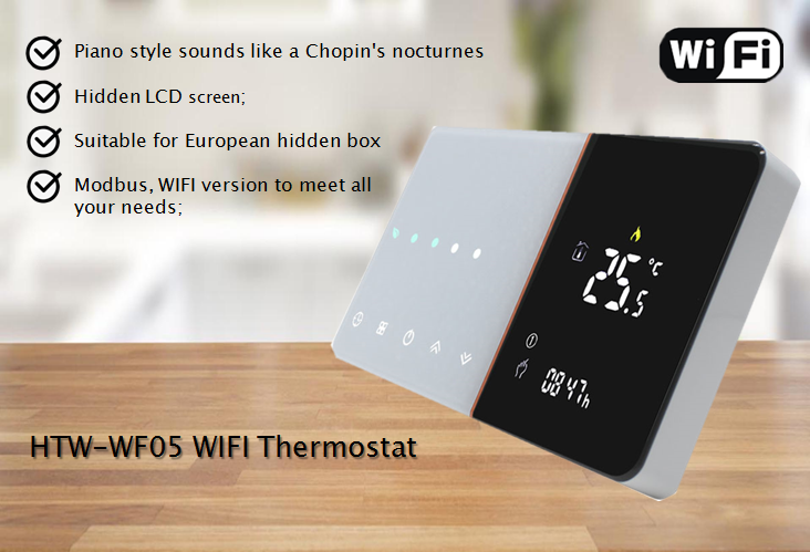 HTW-WF05 series Wifi thermostat is widely used in these environment like Homes, Residential buildings, Schools, Hotels, Hospitals, Offices and etc. to main an ideal room temperature purpose. It can be used in Electric Underfloor Heating, Water Heating or Water/Gas Boiler systems.