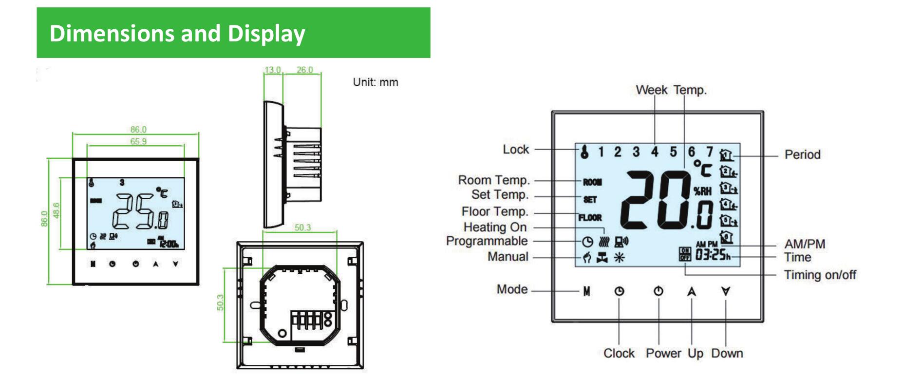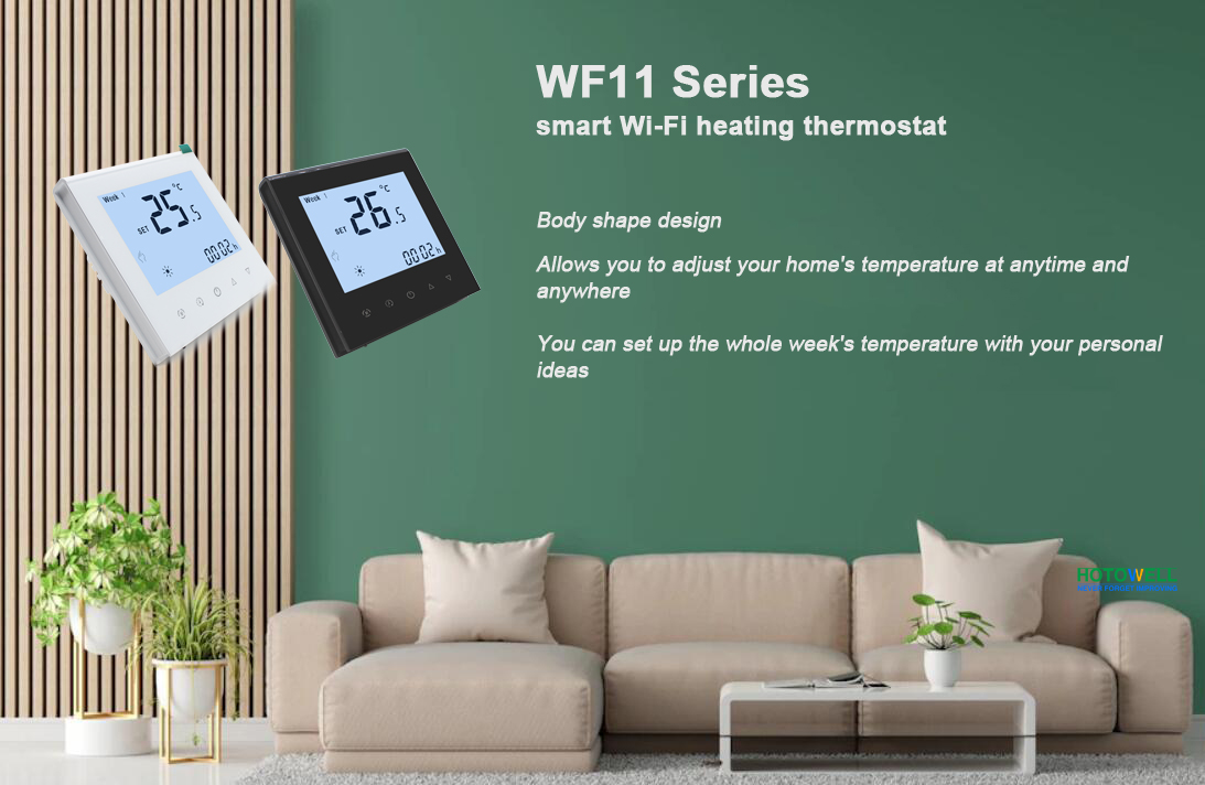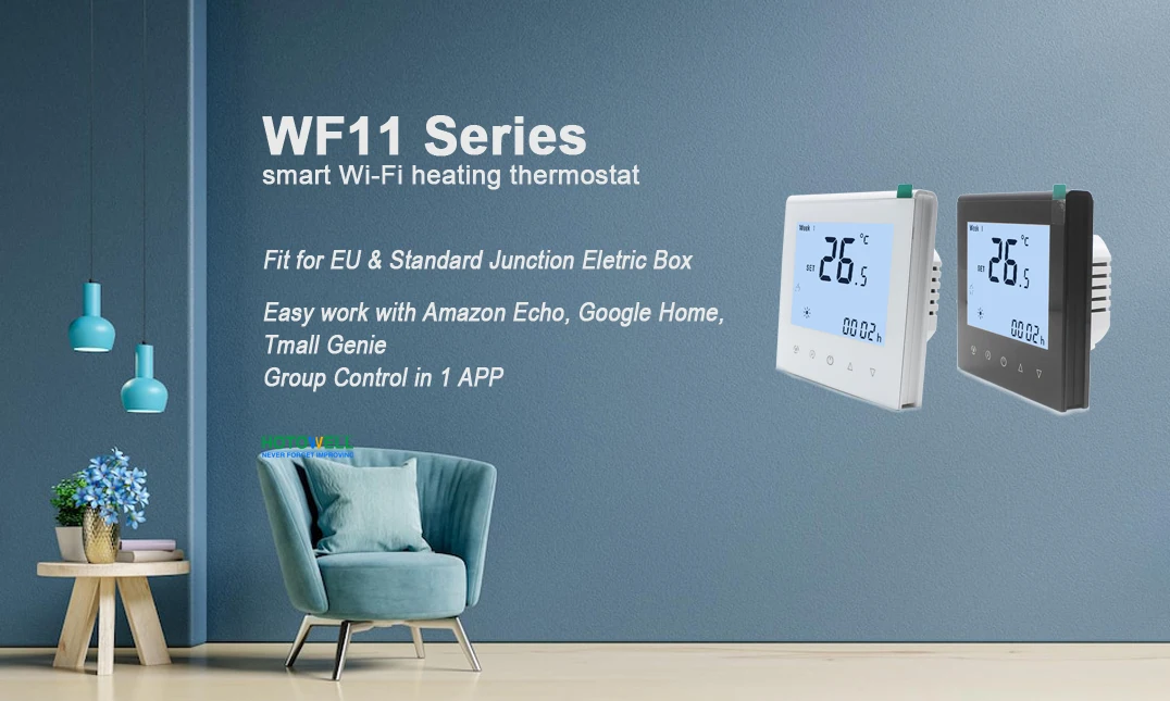 HTW-WF11 series Wi-Fi thermostat is widely used in these environments like Homes, Residential buildings, Schools, Hotels, Hospitals, Offices and etc. to main an ideal room temperature purpose. It can be used in Electric Underfloor Heating, Water Heating or Water/Gas Boiler systems.