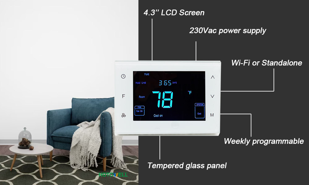 HTW-81-FN7 Multi-Stage thermostat is a device for indoor temperature control. It is mainly applied to heat pump system for heating/cooling, with 3 modes easily switchable: Schedule, Hold and Holiday. The device is of high reliability and practicability,and it can support up to 3H/2C system.