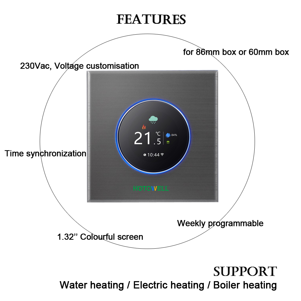 The HTW-WF17 Series thermostat has been developed to control electric are designed for use in commercial, industrial, civil and domestic underfloor, water heating or water/ gas boiler systems.