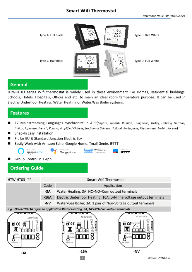 HTW-HT03 series Wifi thermostat is widely used in these environment like Homes, Residential buildings,