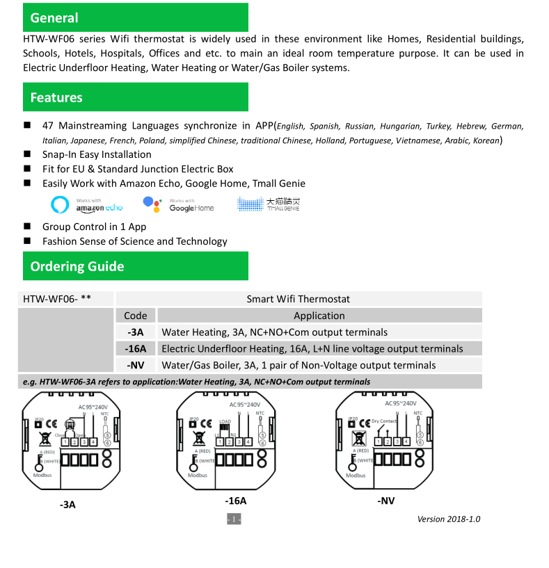 HTW-WF06 series Wifi thermostat is widely used in these environment like Homes, Residential buildings,