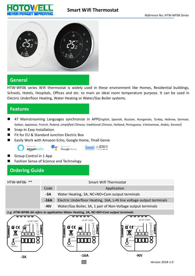 HTW-WF06 series Wifi thermostat is widely used in these environment like Homes, Residential buildings,