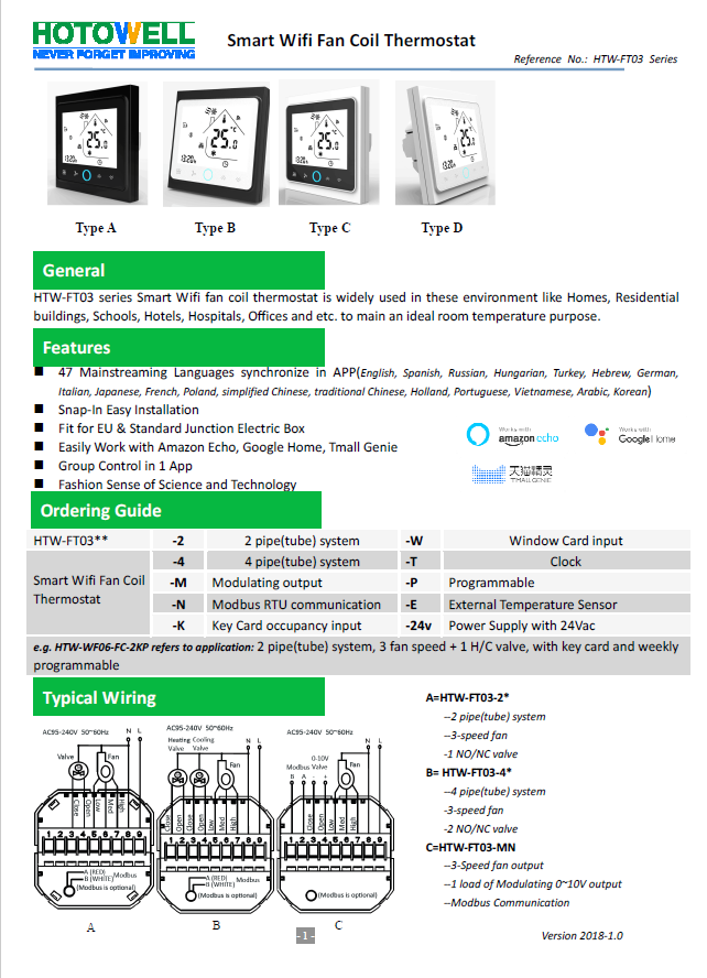 HTW-FT03 series Smart Wifi fan coil thermostat is widely used in these environment like Homes, Residential