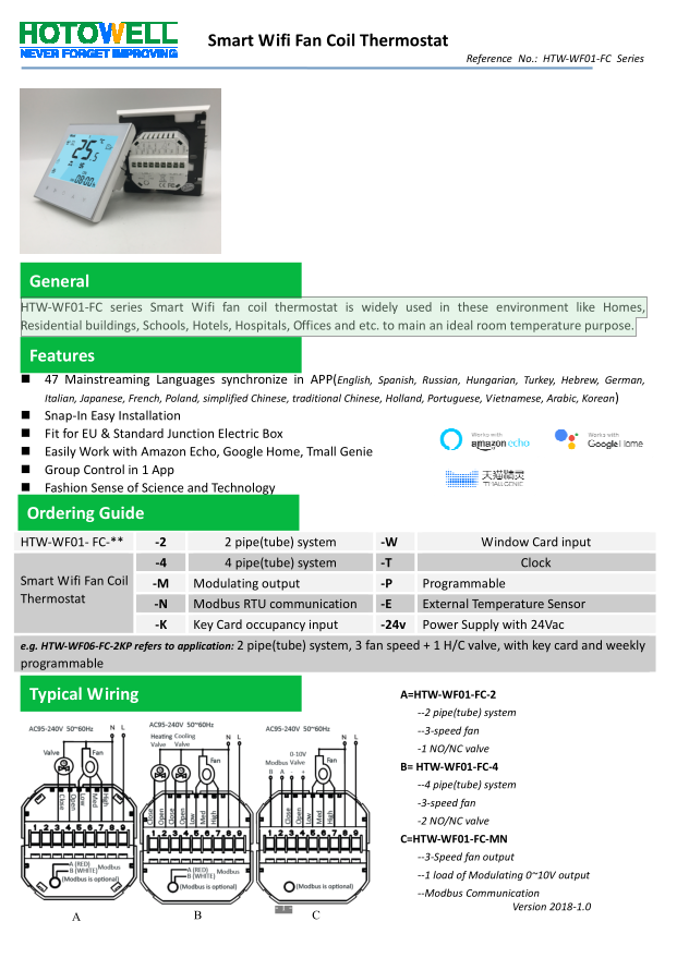 HTW-WF01-FC series Smart Wifi fan coil thermostat is widely used in these environment like Homes,
