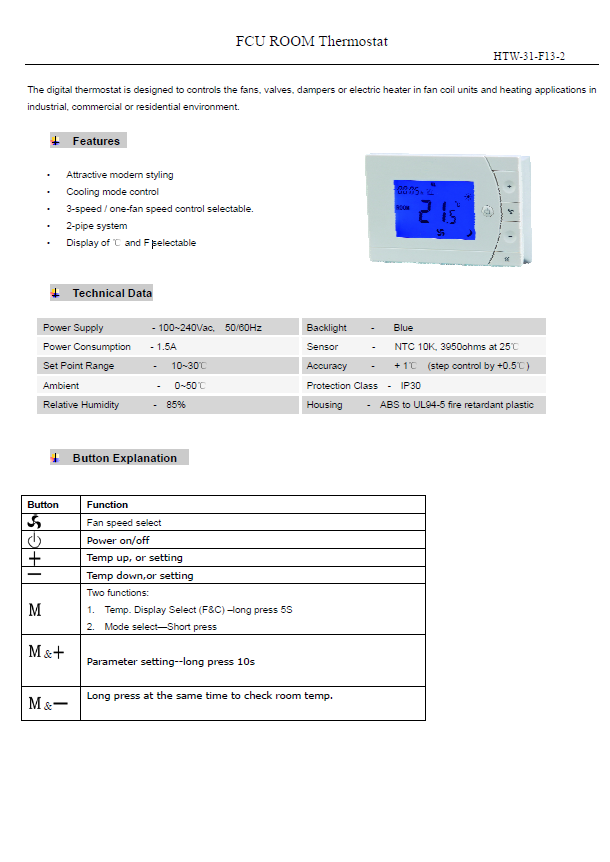 Home Products Hotowell Products School Hotel Home Controller Home Digital Thermostat With NTC Sensor
