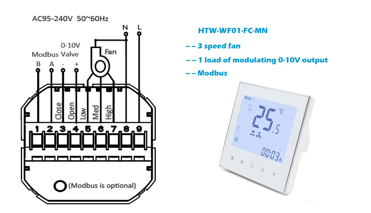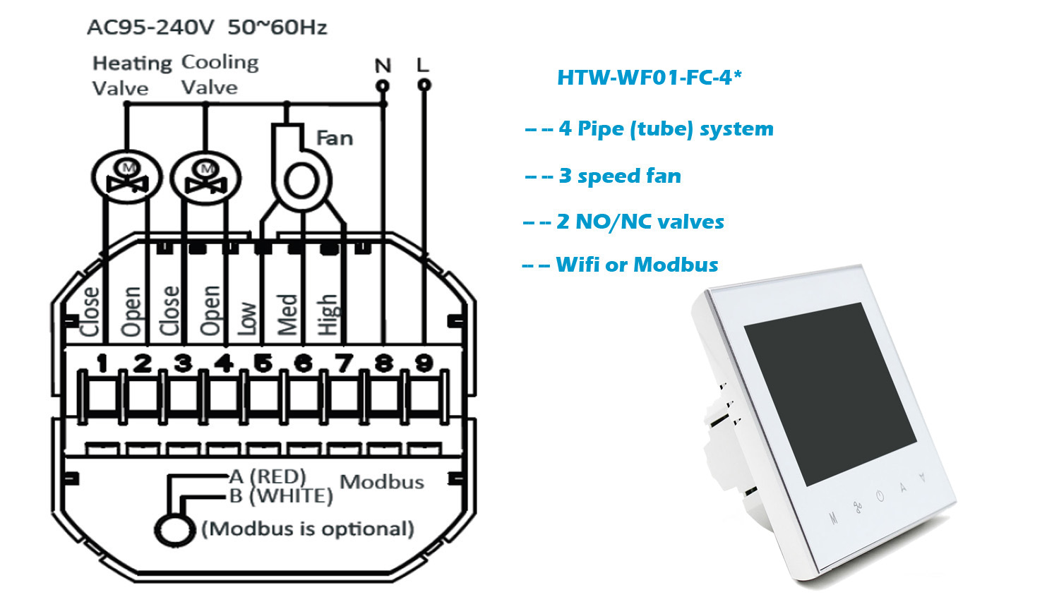 HTW-WF01-FC series Smart Wifi fan coil thermostat is widely used in these environment like Homes, Residential buildings, Schools, Hotels, Hospitals, Offices and etc. to main an ideal room temperature purpose.