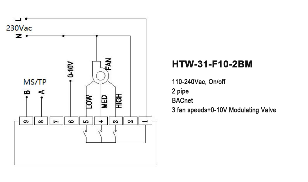 This HTW-31-F10 digital thermostat is designed to controls the fans, valves, dampers or electric heater in fan coil units and heating applications in industrial, commercial or residential environment.