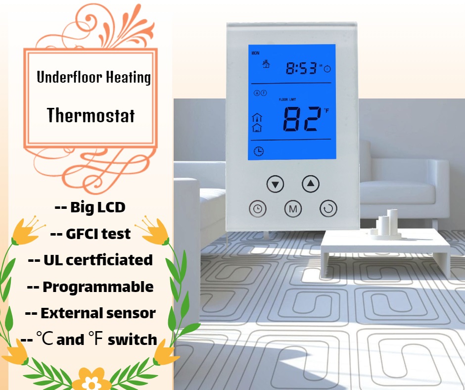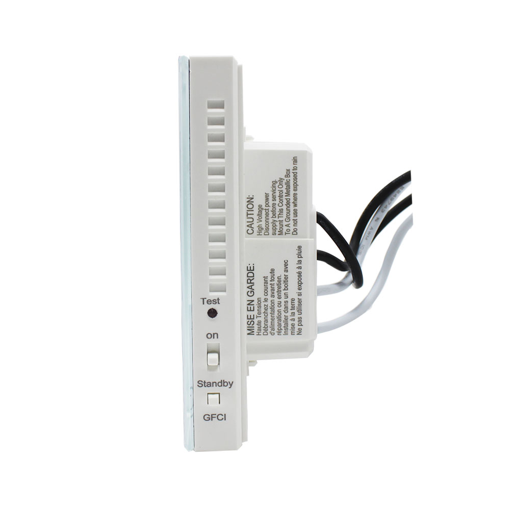 GM4 is a new intelligent heating thermostat for floor warming. It detects the indoor temperature and displays the corresponding value. This device automatically regulates the heating output on 120V/240V in accordance with the set point and the room temperature. The clock controls the 7-day user schedule. It is accurate and sensitive with high reliability and high performance.