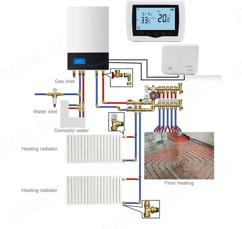 HTW-31-WKT19-WF Series This smart thermostat has been developed to be able to switch electric and conventional heating systems on and off using a set temperature and time remotely at anytime anywhere.