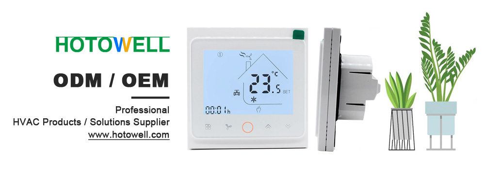 HTW-FT03 series Smart Wifi fan coil thermostat. It is widely used in these environment like Homes, Residential building, Schools, Hotels, Hospital, Offices and etc. to main an ideal room temperature purpose.