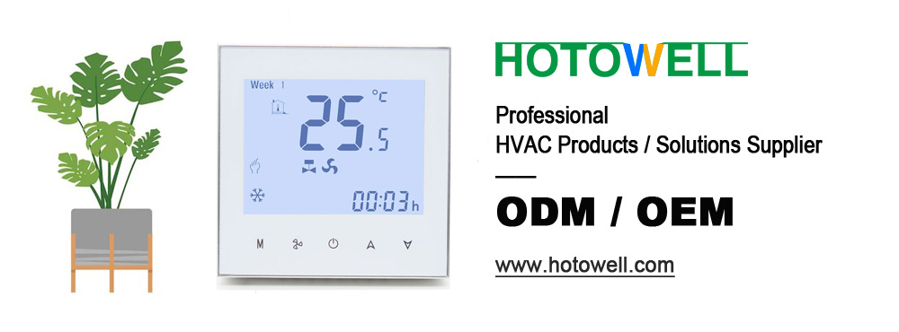 HTW-WF01-FC series Smart Wifi fan coil thermostat. It is widely used in these environment like Homes, Residential building, Schools, Hotels, Hospital, Offices and etc. to main an ideal room temperature purpose.