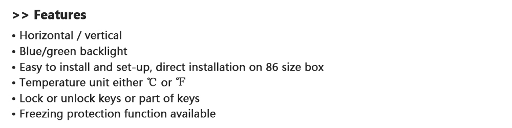 This digital thermostat is designed for the application of 3-speed fan and valves in the fan coil system.