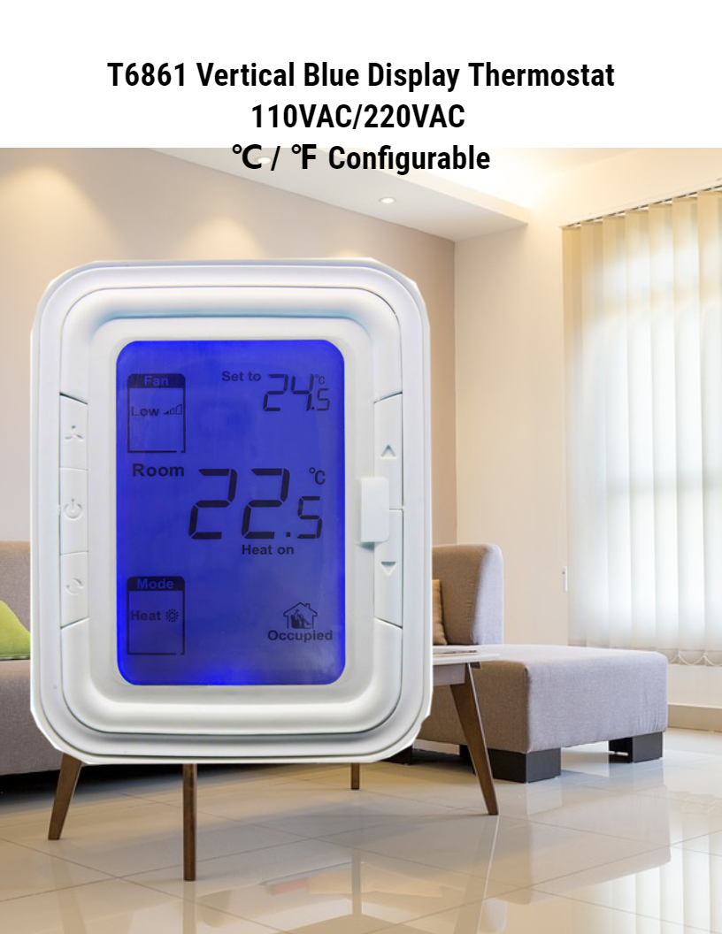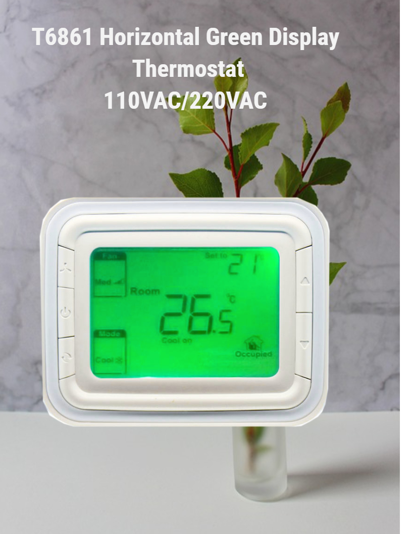 This digital thermostats are designed for application of 3-speed fan and valves in fan coil system.