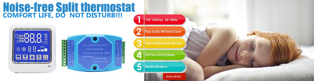This series thermostat application is designed for room climate control at hotels, offices and homes with water and fan coil