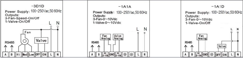 * 3D1D includes 3 load digital ON/OFF fan speed outputs and 1 load digital ON/OFF valve output;