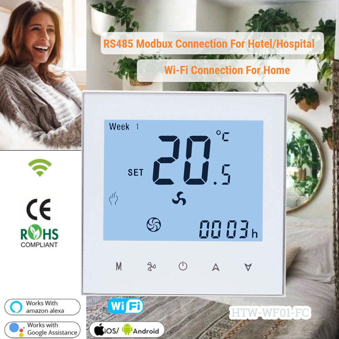 HTW-WF01-FC series Smart Wifi fan coil thermostat is widely used in these environment like Homes, Residential buildings, Schools, Hotels, Hospitals, Offices and etc. to main an ideal room temperature purpose