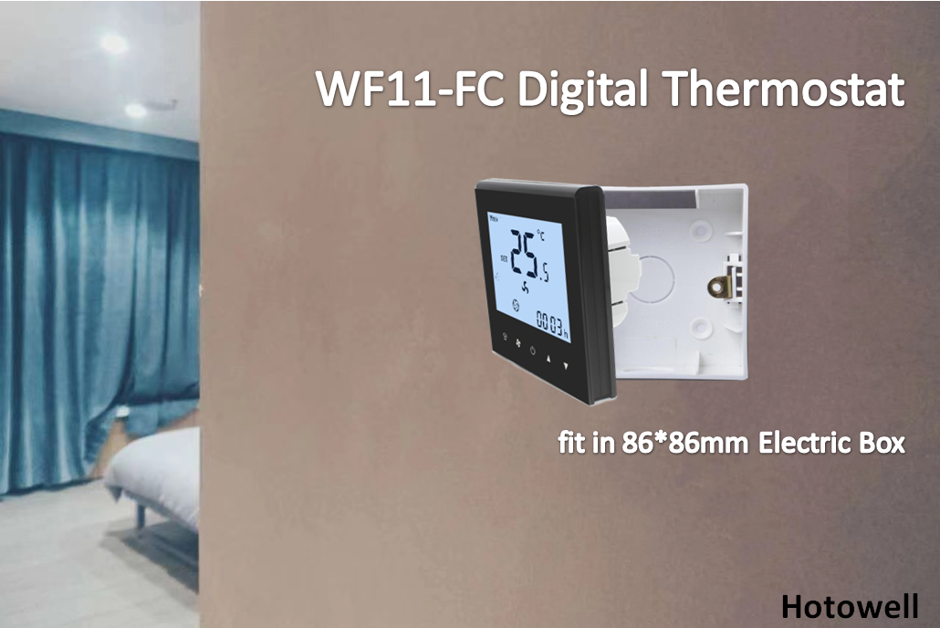 HTW-WF11- EC series Modbus fan coil thermostat is designed with EC Fan + 1 cool valve + 1 heat valve +externals sensor + Keycard +Modbus communication functions, it is widely used in these environment likeHomes, Residential buildings, Schools, Hotels,Hospitals, Offices and etc. to main an ideal room temperaturepurpose.