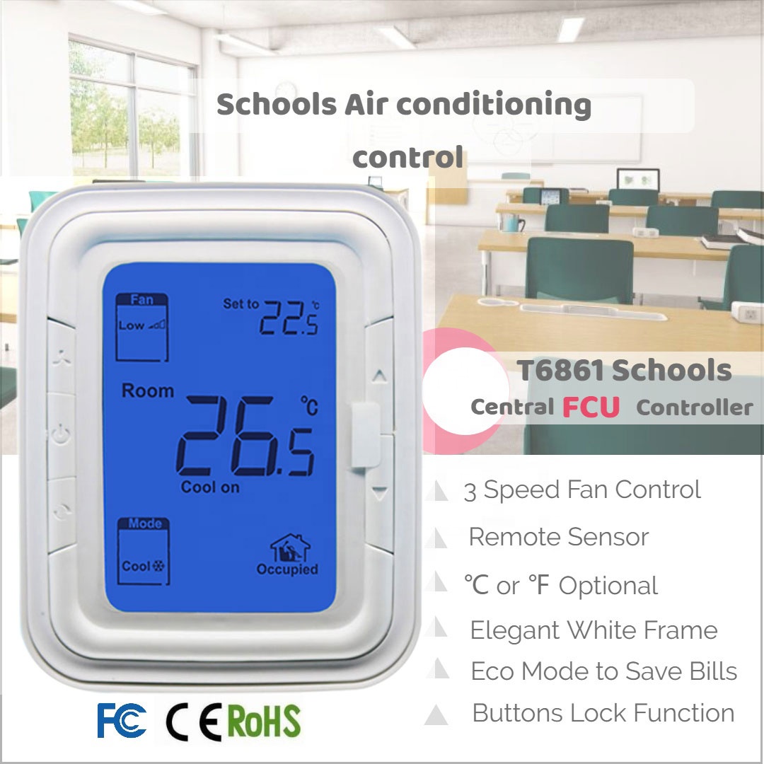 This digital thermostats are designed for application of 3-speed fan and valves in fan coil system. This model with total the same functions with Honeywell raw model T6861.
