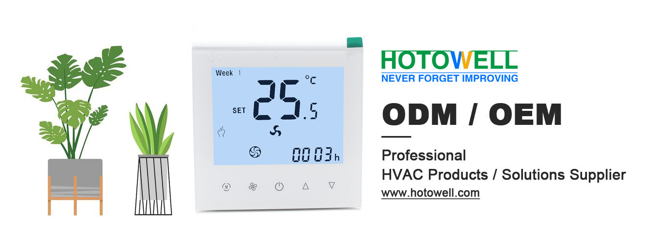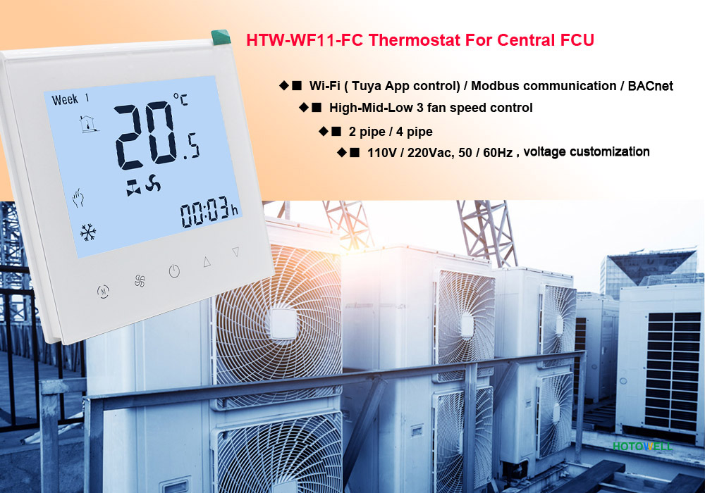 HTW-WF11-FC series Smart Wifi fan coil thermostat. It is widely used in these environment like Homes, Residential building, Schools, Hotels, Hospital, Offices and etc. to main an ideal room temperature purpose.