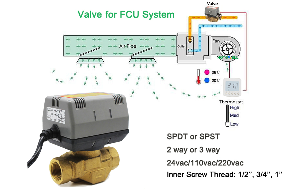 HTW-V61 series motorized valves(3-wire) are used to control the flow of hot water, chill water in heating, cooling or air-conditioning applications, so as to control room temperature indirectly. It consists of Actuator and Valve Body. The room temperature could be controlled in the set-point through turn-on or turn-off of valve.