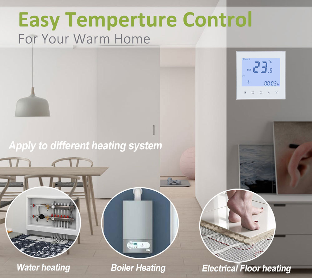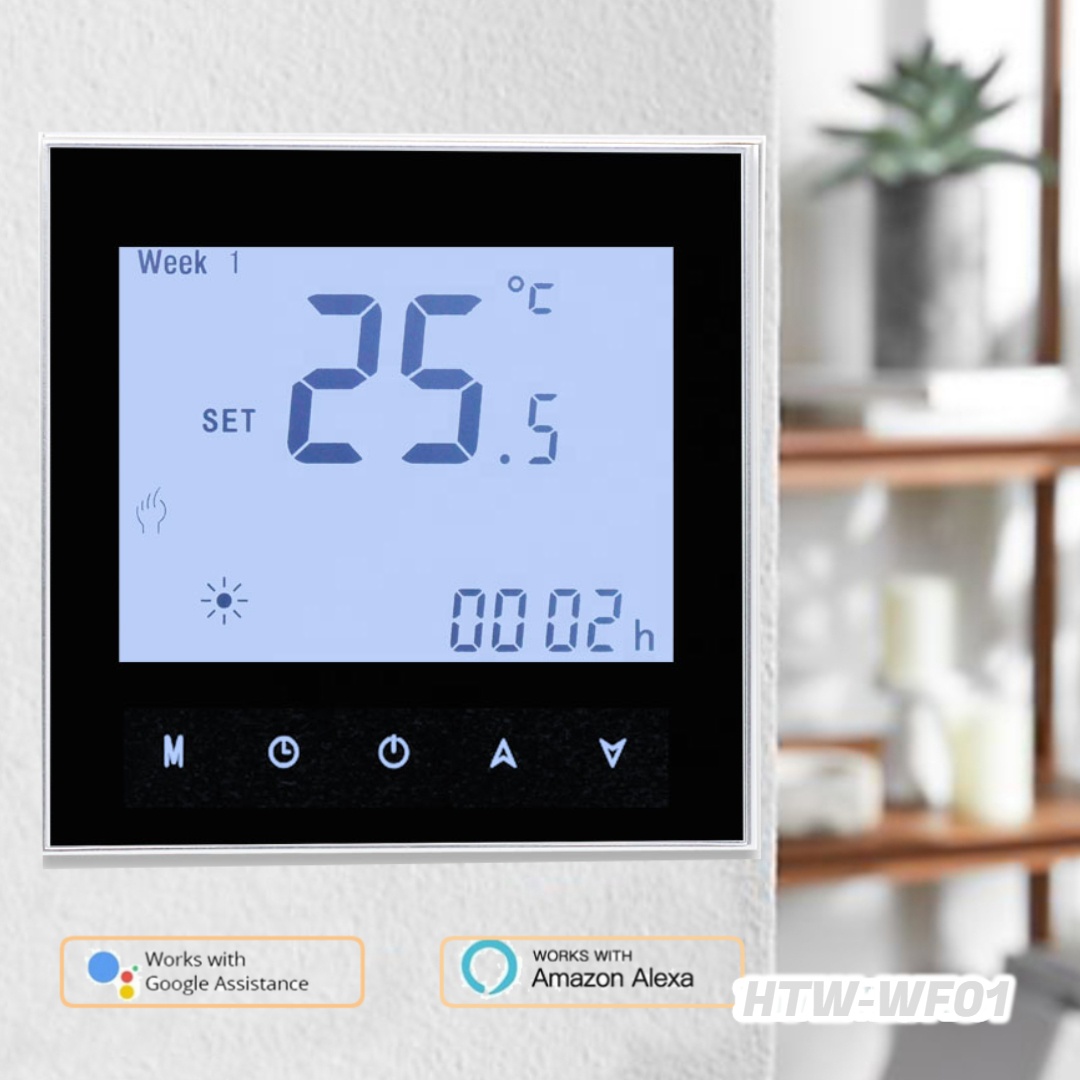 HTW-WF01 series Wifi thermostat is widely used in these environment like Homes, Residential buildings, Schools, Hotels, Hospitals, Offices and etc. to main an ideal room temperature purpose.
