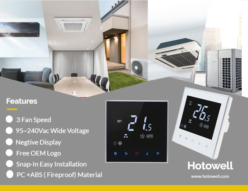 HTW-WF02-FC series smart Wi-Fi fan coil thermostat is widely used in these environments like Homes, Residential buildings, Schools, Hotels, Hospitals, Offices and etc. to main an ideal room temperature purpose.