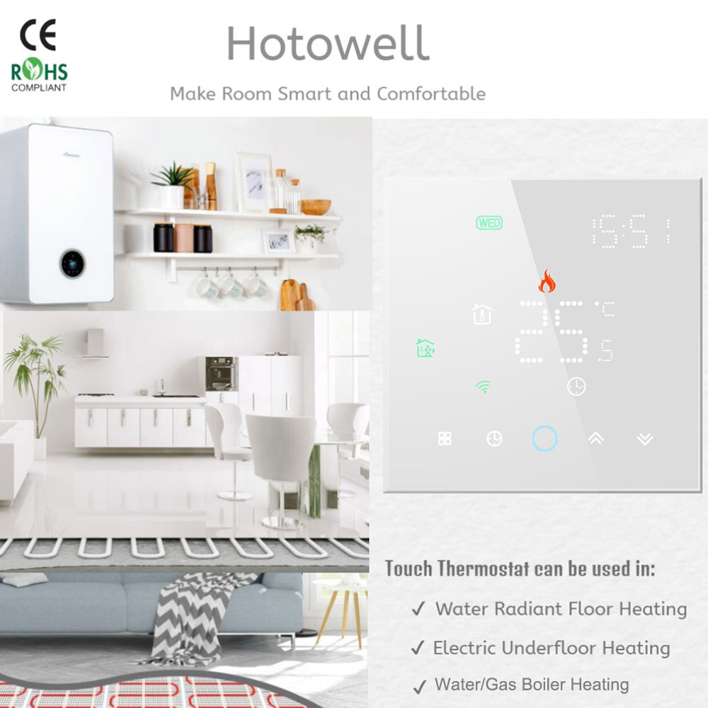 >> General HTW-WF03 series LED Matrix lighting smart Wifi thermostat is widely used in these environments like Homes, Residential buildings, Schools, Hotels, Hospitals, Offices and etc. to main an ideal room temperature purpose. It can be used in Electric Underfloor Heating, Water Heating or Water/Gas Boiler systems.