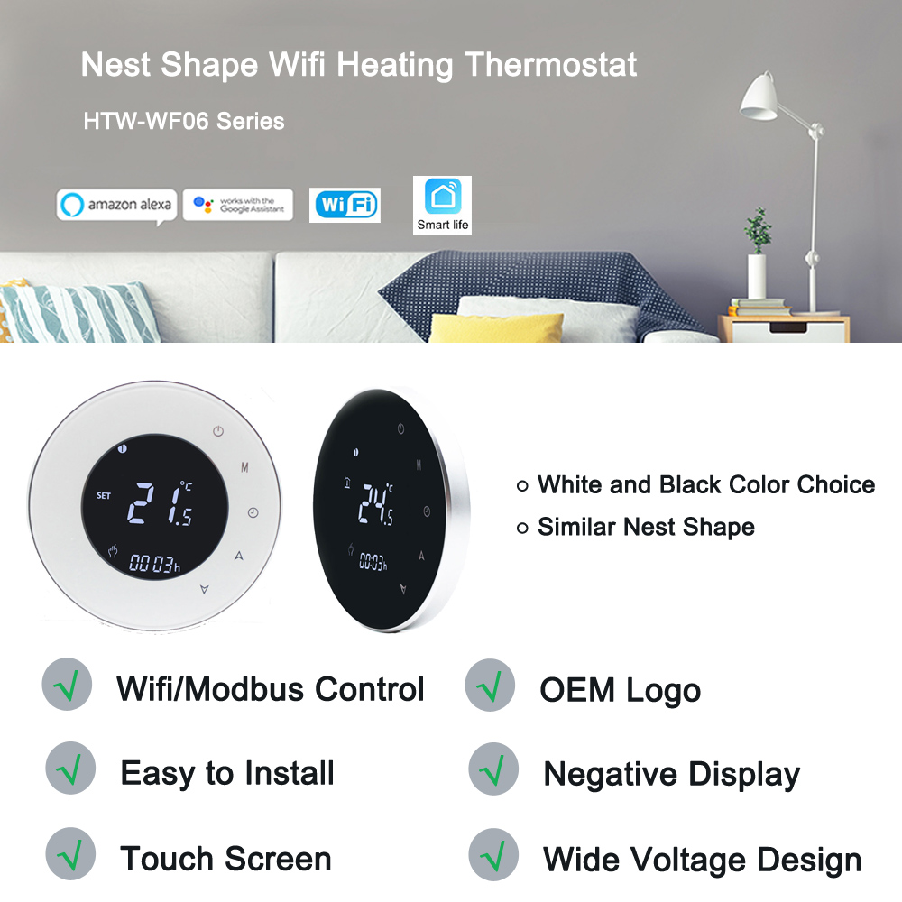HTW-WF06 series Wifi thermostat is widely used in these environments like Homes, Residential buildings, Schools, Hotels, Hospitals, Offices and etc. to maintain an ideal room temperature purpose.