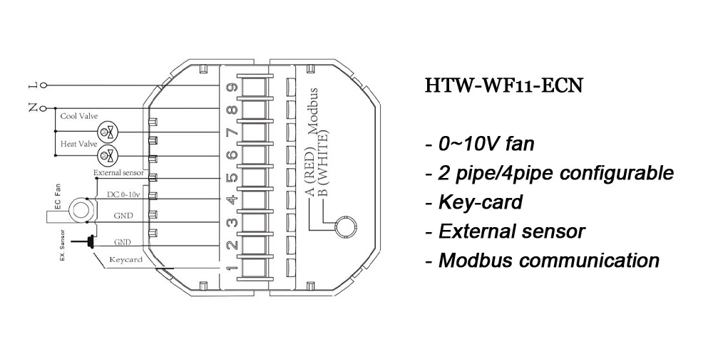 HTW-WF11-FC series smart fan coil thermostat is widely used in these environments like Homes, Residential buildings, Schools, Hotels, Hospitals, Offices and etc. to main an ideal room temperature purpose.